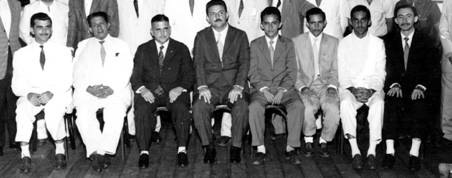 A primeira diretoria da ACLEA: Carlos Zamith, Mansueto Queiroz, Irisaldo Godot (1º. presidente), Flaviano Limongi (vice), Petrarca Vieira, Guaraçara Mitoso, Flavio de Souza e Sérvio Nina.