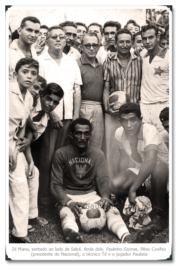 “O professor Gilberto Mestrinho era deputado Federal por Roraima e me acenou para jogar pelo Nacional e vim correndo”. O titular era Tongato. Fiz minha estréia, com 32 anos de idade, logo num Rio-Nal, dia 2 de setembro de 1962, no Parque. Vencemos por 1×0, gol de Pepeta. O nosso técnico era Walter Félix de Souza, o Té. Ele gostou do meu desempenho e segurei a posição, no time titular, mas nesse ano o campeão foi o Rio Negro”.
