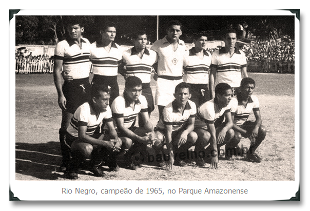 Rio Negro, campeão de 1965, no Parque Amazonense. Em pé, Edson Ângelo, Valdér, Rubens, Clovis, Catita e Damasceno. Agachados estão Nonato, Sabá Burro Preto, Thomaz, Ademir Pernambucano e Horácio.