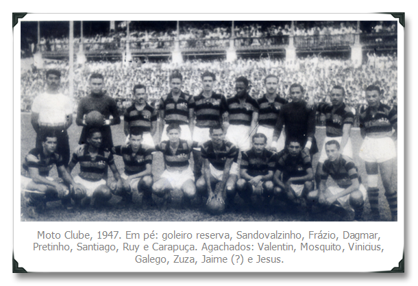 MOTO CLUBE – Ruy, Santiago e Carapuça; Sandovalzinho, Frazio (Dagmar) e Pretinho; Mosquito (Jesus), Valentin, Galego, Zuza e Jaime.